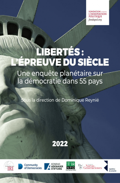 Dominique Reynié (dir.), Libertés : l’épreuve du siècle, (Fondation pour l’innovation politique, International Republican Institute, Community of Democracies, Konrad-Adenauer-Stiftung, Genron NPO, Fundación Nuevas Generaciones, República do amanhã, janvier 2022).