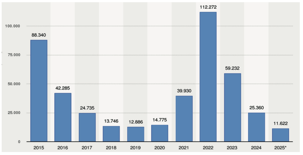 Statista, „Anzahl der Asylanträge in Österreich von 2015 bis 2025”, septembre 2025 [en ligne].