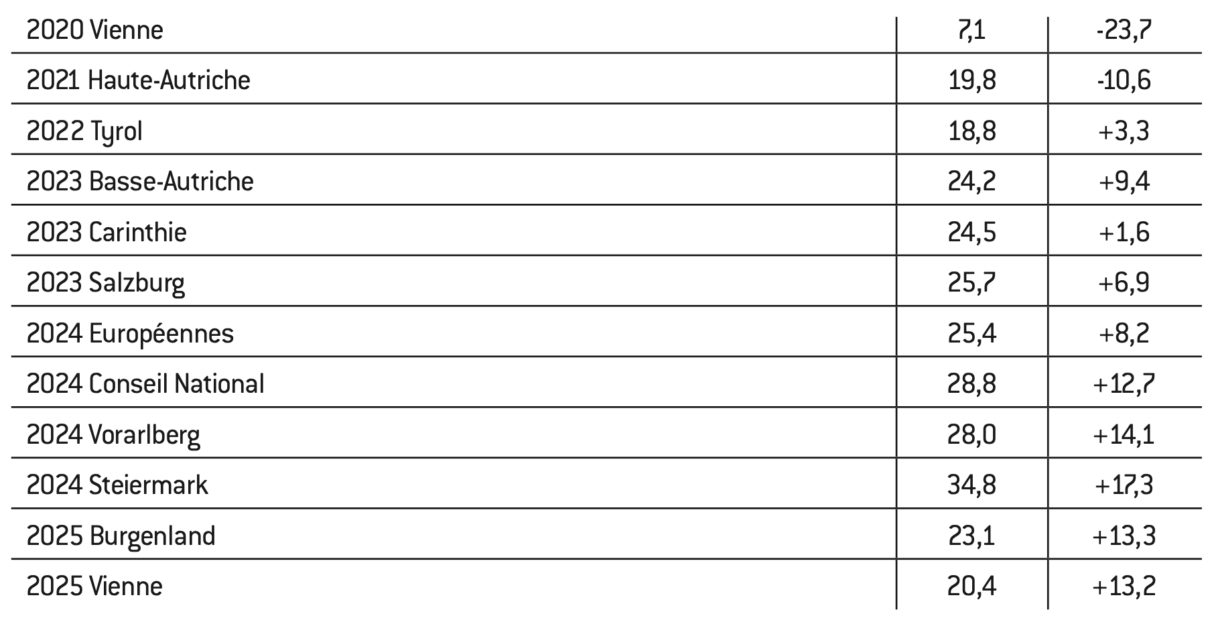 À la vue des sondages, la presse a intensifié ces derniers mois, sa campagne anti-FPÖ. Les élections de Vienne de 2025 en furent un moment fort, mais aux résultats paradoxaux 2. En effet, au fil des articles, les journalistes énuméraient les déficits des partis démocratiques et dénonçaient, à juste titre, l’apparition d’un climat particulièrement favorable à la propagande du FPÖ.