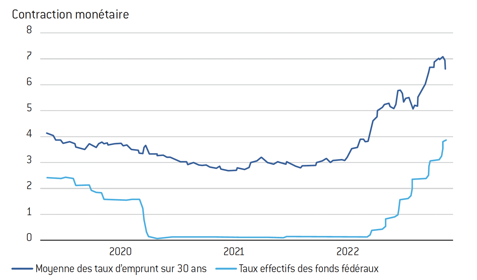 Le pire de l’inflation n’ayant pas encore été absorbé, le pire de la contraction du pouvoir d’achat est à venir. À ce jour, l’inflation se situe autour de 8 à 10 %, en fonction des zones, et l’on parle de taux entre 4 et 5 %. Par conséquent, la probabilité est faible pour que les courbes se croisent. Tout cela nous pousse à croire qu’il faudra aller au-dessus de 5 % voire 6%, et que ce fameux « dot plot » continue de se déplacer comme il l’a fait dans les années 1970.