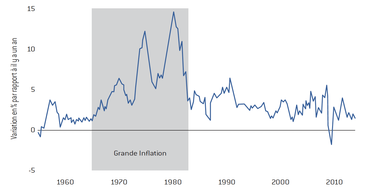 c) Le dernier enseignement que l’on peut tirer de ce graphique à propos de cette période est que l’inflation s’est effondrée au début des années 1980.