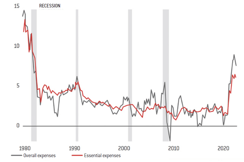 Note: The “essential expenditure” curve excludes food and energy prices.