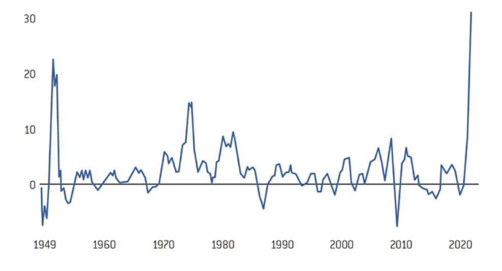 b) The evolution of inflation is neither linear nor fast-moving, and history seems to repeat itself today. We can see that this inflationary environment has lasted for about fifteen years, and that it has not developed in a linear way but rather an irregular way. These two observations are important. The inflation we are currently experiencing is between 5% and 10%. A peak of 15% does not seem impossible. In the United Kingdom, we were already at around 12% and in the euro zone, around 10%. This shows the unstable aspects of this dynamic which should warn us against the claim that 7.2% inflation, for example, is a good surprise compared to the estimate of 7.3%. On the one hand, this difference is smaller than the margin of error and on the other hand, history has shown us that inflation tends to oscillate.