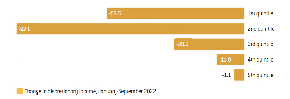 Nothing left – Discretionary income of the second quintile of earners has fallen since the beginning of the year in the UK