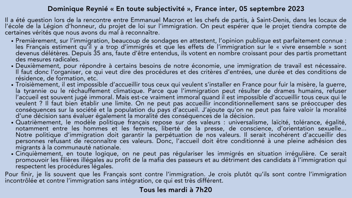 « Je lis souvent que les Français sont contre l’immigration. Je crois plutôt qu’ils sont contre l’immigration incontrôlée et contre l’immigration sans intégration. »