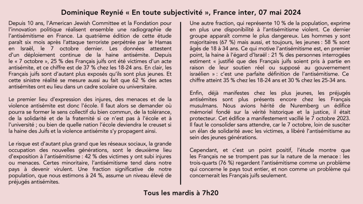 🎙️La chronique de @DominiqueReynie: "Il faut consolider l’édifice mémoriel fondé sur la vérité historique et la justice, car le 7 octobre, loin de susciter un élan de solidarité avec les victimes, a libéré l’antisémitisme" 👉https://t.co/QecuhlF5iY 🗓️Le mardi à 7h20 pic.twitter.com/Om7ZRKVUPn