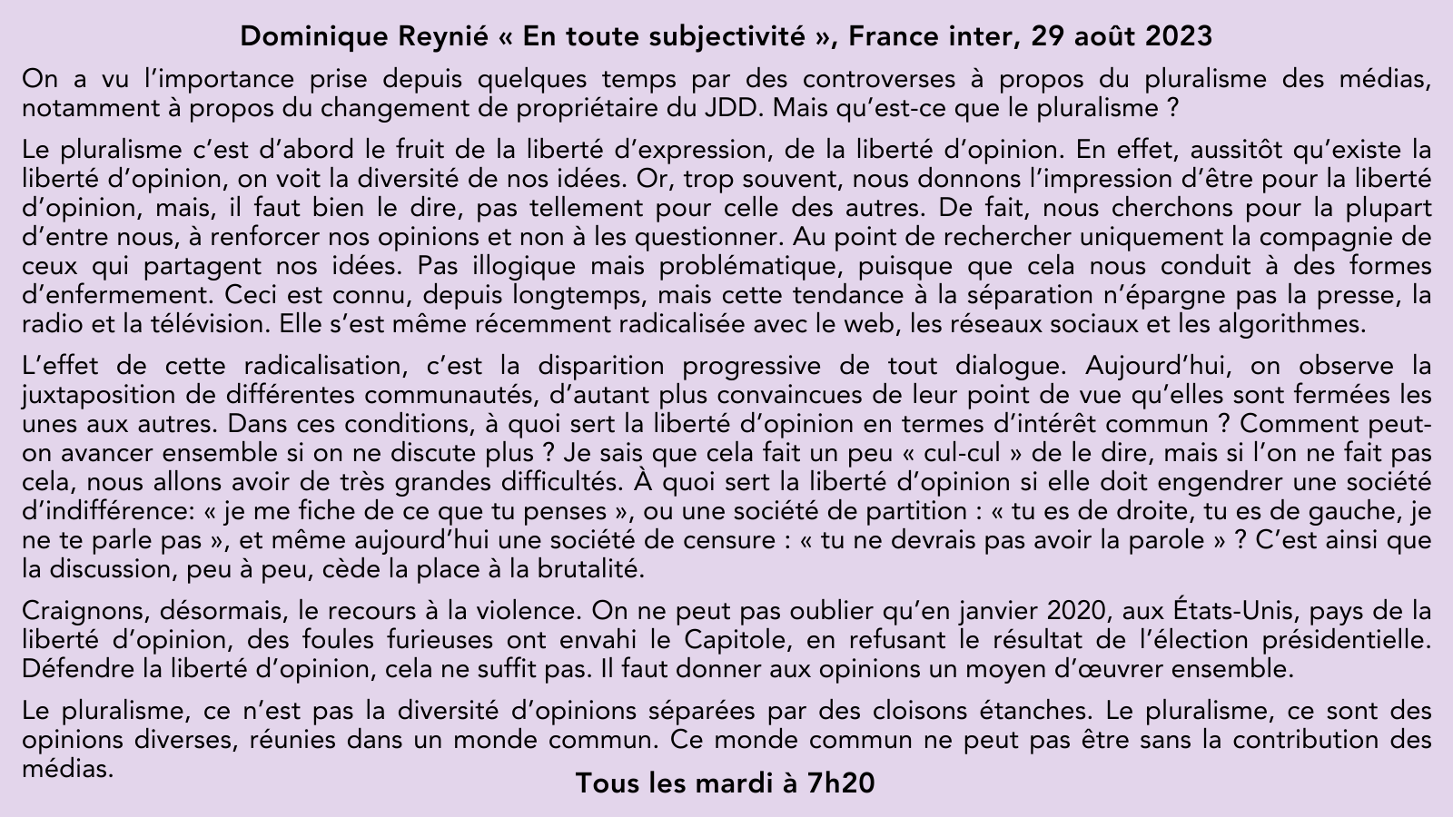 🎙️Sur @franceinter, la chronique hebdomadaire de @DominiqueReynie, invité de @ndemorand. “Défendre la liberté d’opinion cela ne suffit pas, il faut donner aux opinions un moyen d’œuvrer ensemble.” 🗓️Le mardi matin à 7h20. pic.twitter.com/QB5YaZV00q