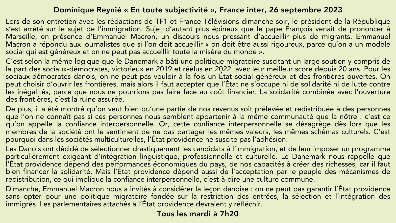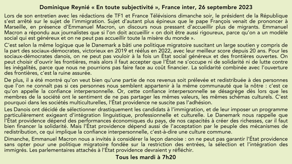 🎙️Sur @franceinter, la chronique hebdomadaire de @DominiqueReynie, invité de @ndemorand: “Le Danemark nous rappelle que l’État providence dépend de nos capacités à créer des richesses, car il faut bien financer la solidarité”.