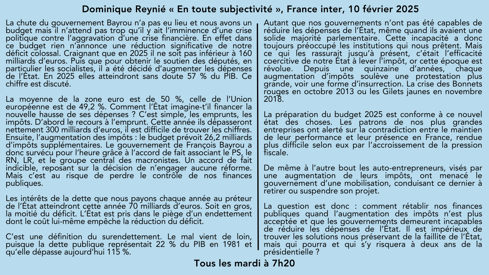 «Comment rétablir nos finances publiques quand l’augmentation des impôts n’est plus acceptée et que les gouvernants demeurent incapables de réduire les dépenses de l’État?»