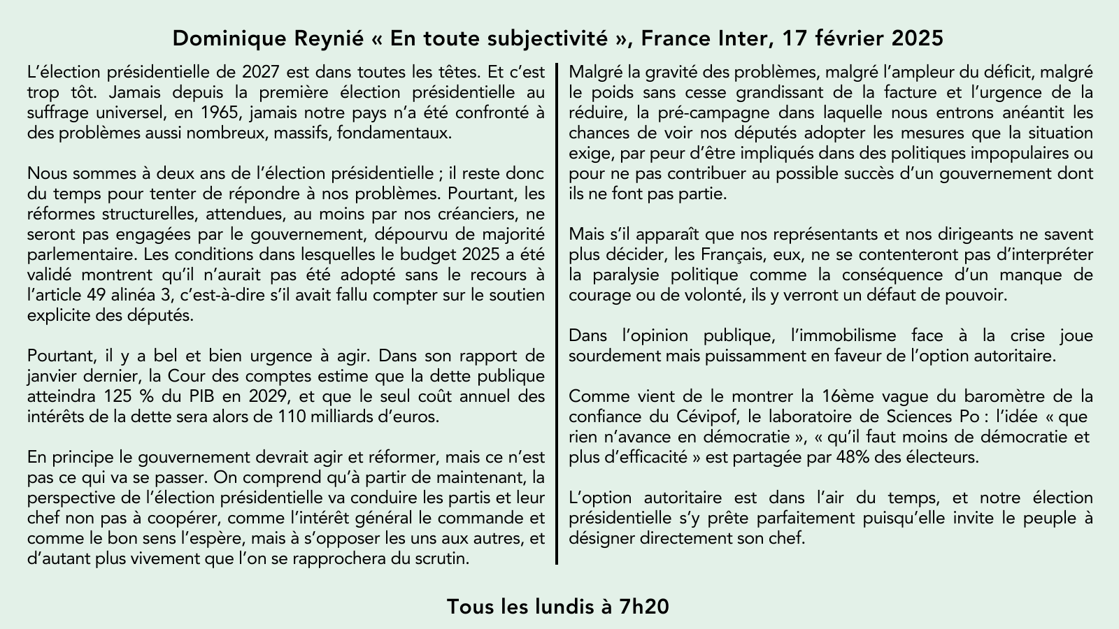 «Face à la crise, l’immobilisme joue sourdement en faveur de l’option autoritaire, c’est dans l’air du temps, et notre élection présidentielle s’y prête parfaitement puisqu’elle invite le peuple à désigner directement son chef.» pic.twitter.com/QfJKdwv5sj