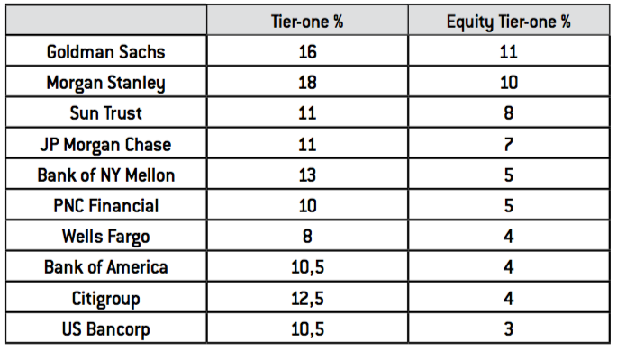 - Raising the quality of Tier-one core capital, in other words rising the share of ordinary stocks in the minimum required. Until the crisis those could represent only 2% of the minimum required based on the risk-weighted