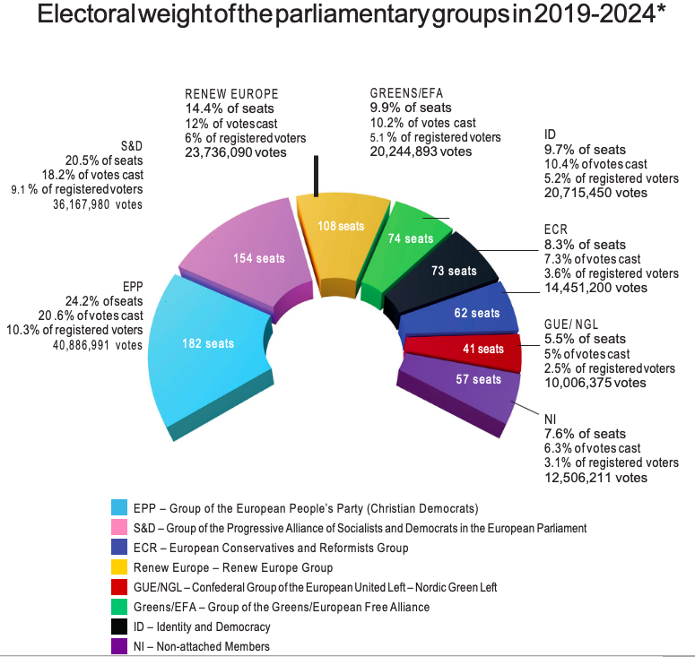 2019 European Elections. The weight of the political electorates compared to the electoral weight of the parliamentary groups