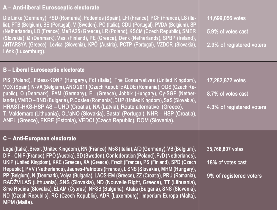 - The anti-liberal Eurosceptic electorate (A) brings together voters who voted in favour of lists proposing radical reform of the European These anti-liberals advocate for the strengthening of solidarity, equality and direct democracy in a discourse that can, however, go as far as rejecting the European Union.