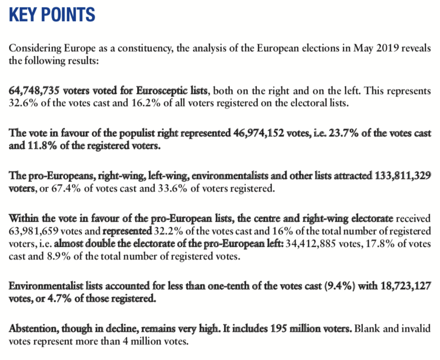 Considering Europe as a constituency, the analysis of the European elections in May 2019 reveals the following results:
