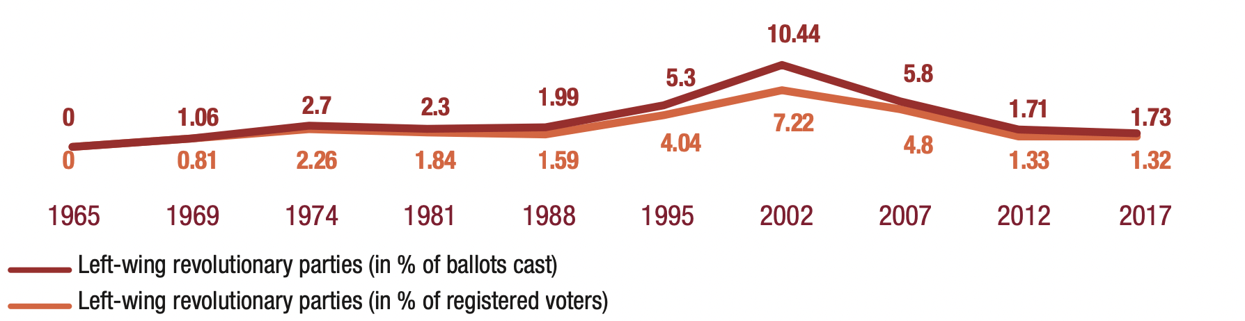 – stated willingness to vote for parties and candidates on the revolutionary left (LO/NPA).