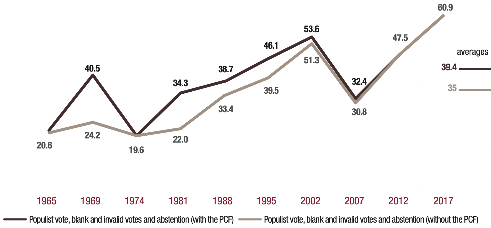 The electoral protest indicator estimates the potential of different possible electoral protest behaviours: abstention from voting, casting a blank vote, or voting for populist parties or candidates. In our indicator, the idea of a protest electorate covers three types of electoral behaviour: