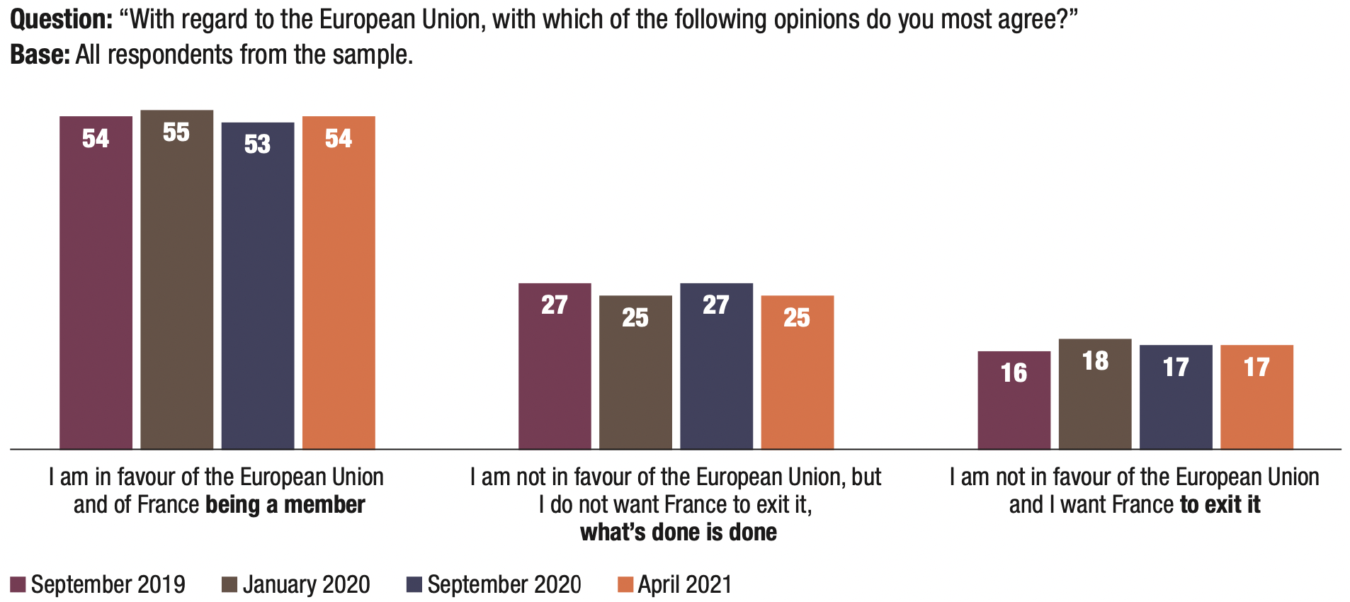 13. Despite the controversies that marked the management of the public health crisis, attachment to the European Union has not been dented. To wit, as noted in the previous waves of this survey, 79% of voters want to stay in the European Union.