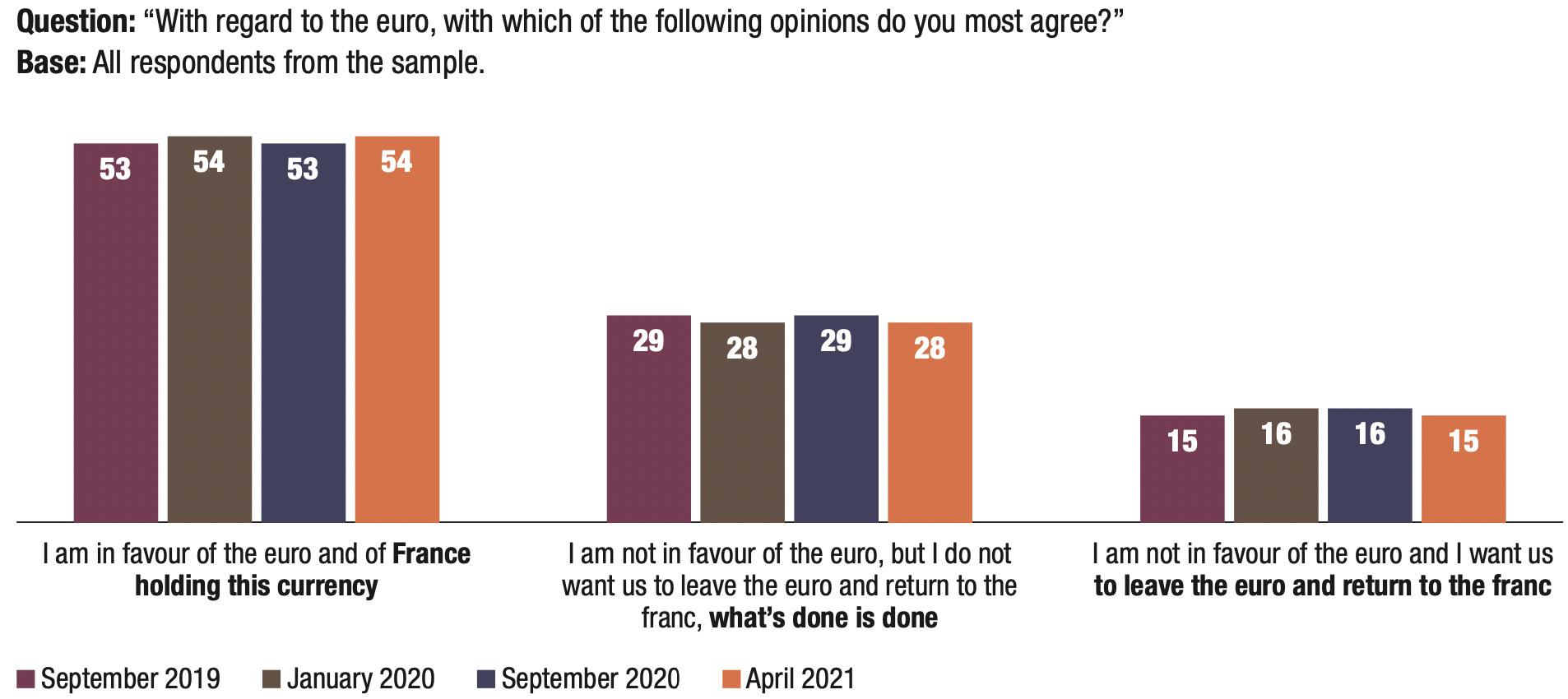 The results of Wave 1 were first published in October 2019. The results of Waves 2 and 3 were released in a single publication due to restrictions caused by the lockdown (October 2020). In this publication, we present the results of Wave 4. All survey results are available for free on our website fondapol.org as are the data, on data.fondapol.org.