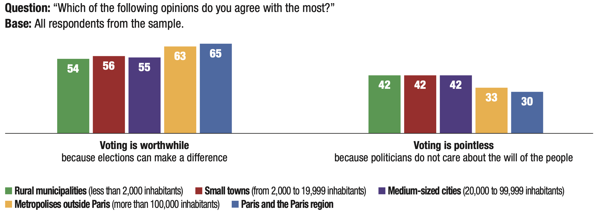 The majority wish (74%) is “for more political decisions to be made by the regions, departments and municipalities, and fewer in Paris”