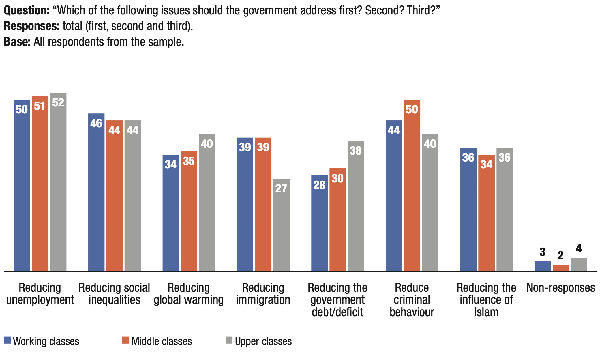 20. Which of the following issues should the government address first? Second? Third?