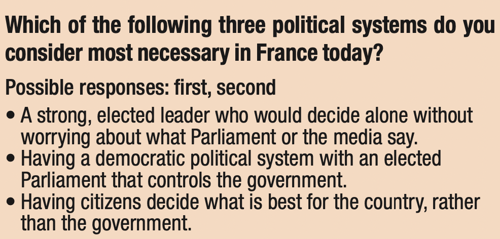 22. Among the following three political systems, which one do you think is most needed in France at the moment? First? Second?