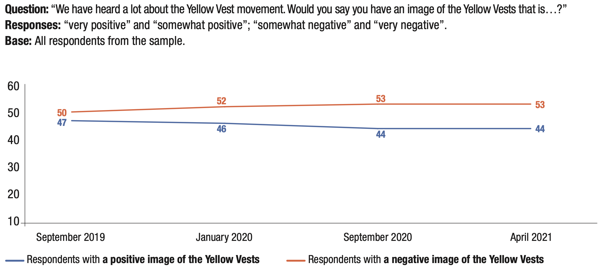 27. A significant proportion of the French (44%) continue to have a positive image of the Yellow Vests.