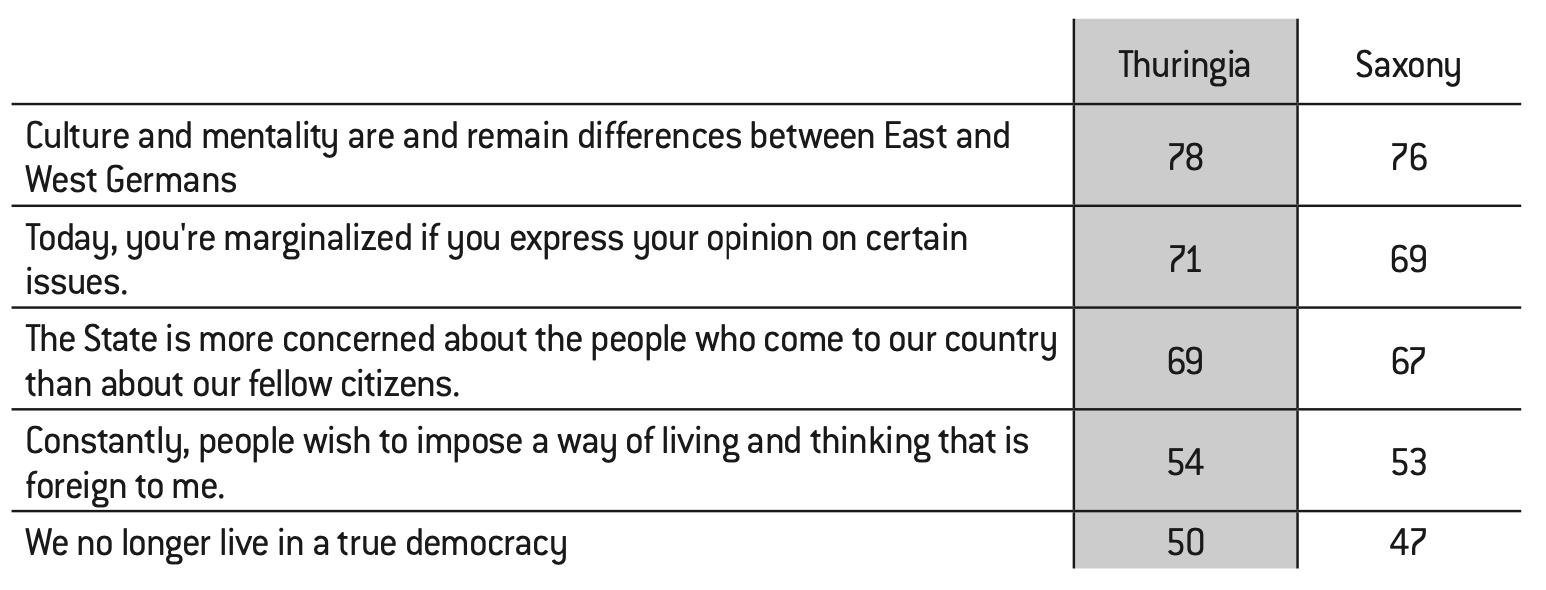 Großer Teil der Ostdeutschen glaubt an Verschwörung gegen sie (A large proportion of East Germans believe in a conspiracy against them), [online].
