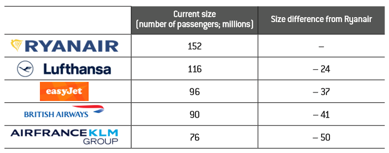 If one considers the number of passengers carried on medium-haul flights, it is striking to note that Ryanair was until 2019 the leading European carrier, ahead of Lufthansa. The difference in size was even more pronounced with the other companies: for example, the size of IAG on medium-haul represented only 59% of that of Ryanair.