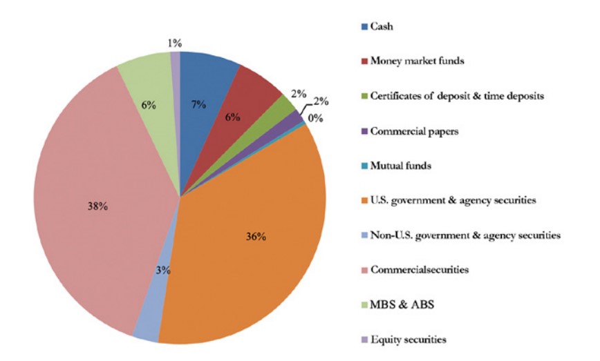 Despite this lack of transparency with regard to management strategies, the companies’ annual reports combined with their regulatory declarations to the Securities Exchange Commission (SEC) provide precious details on the maturity and nature of the assets that make up their cash positions. Firstly, the distinction between “cash and cash equivalents” and “marketable securities” gives an indication on their assets’ maturity. In accordance with the regulatory standards in force, “cash and cash equivalents” are any highly liquid investments with a maturity date that is up to three months from the purchase date, while “marketable securities” are any marketable assets available for sale with a maturity date that is over three months from the purchase date.