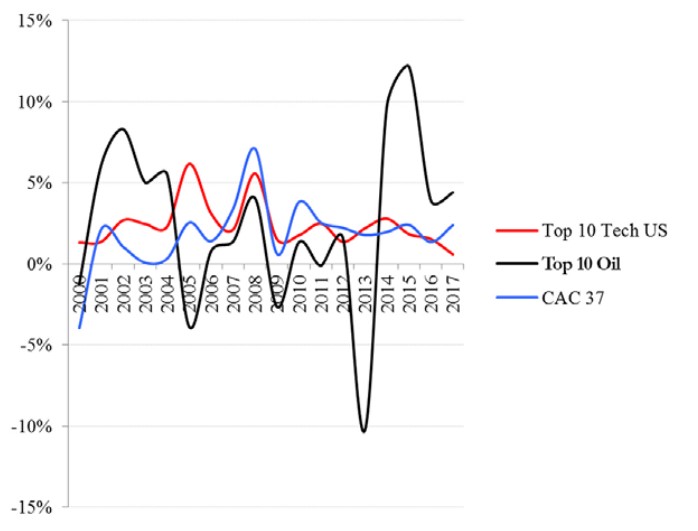 In addition to these samples of tech companies, we used samples of the main global oil companies, CAC 37 companies, and the largest global bond funds: