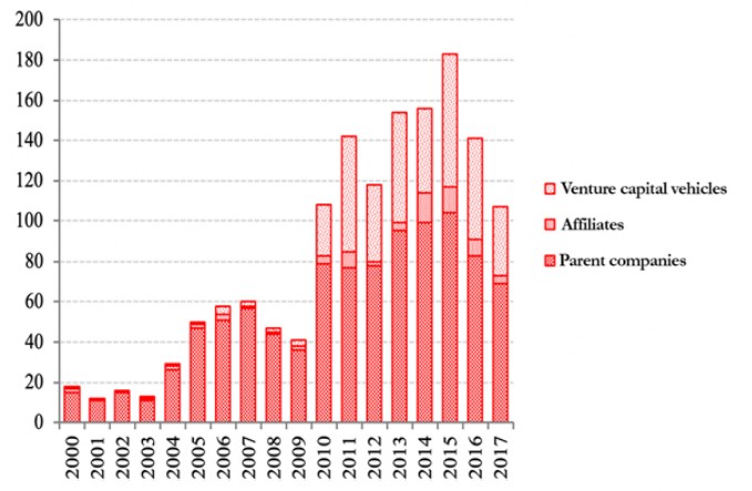Graph 4: Minority investments by in-house venture capital vehicles (number of deals)