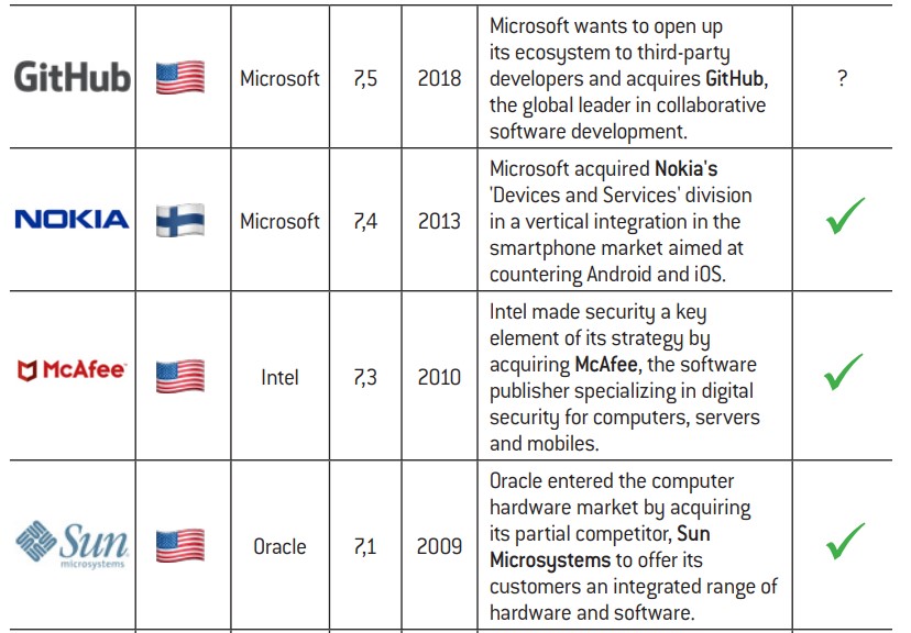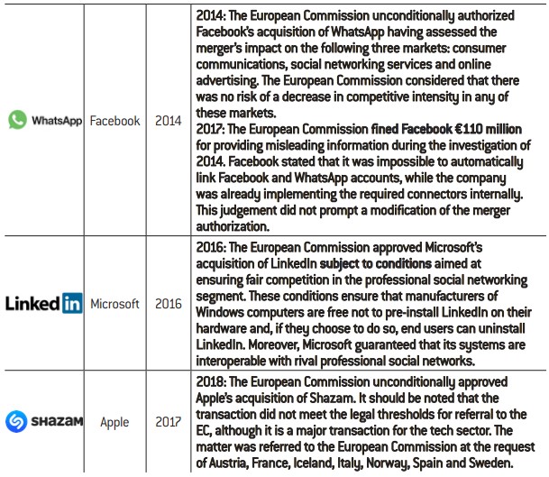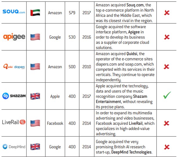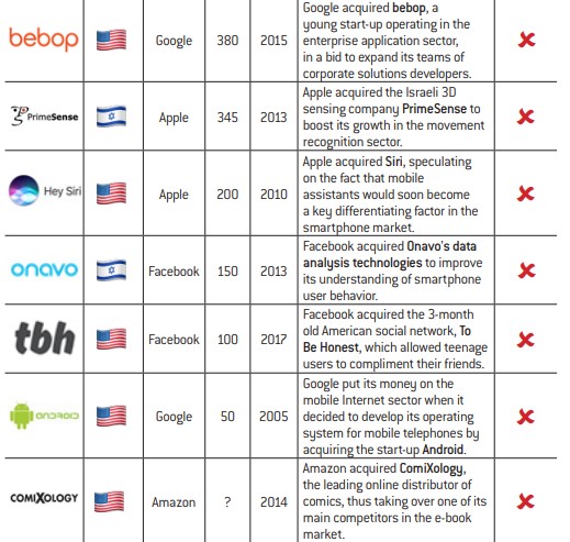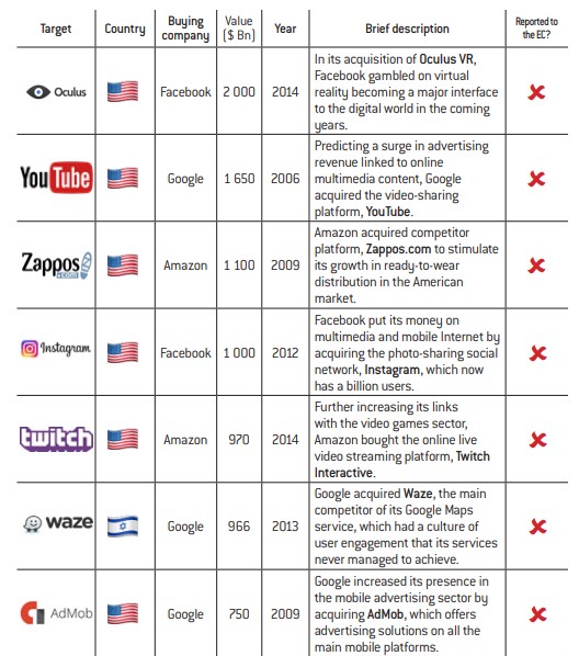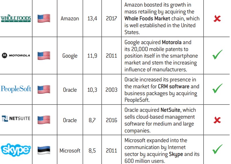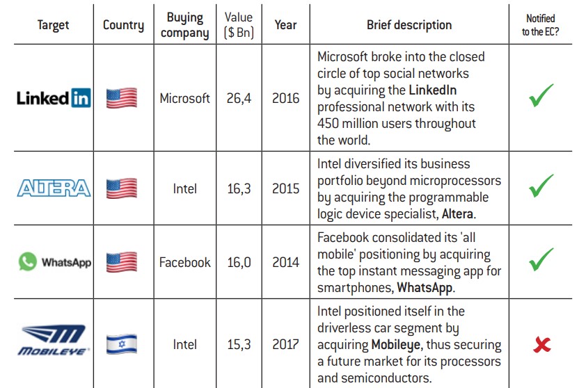Acquisitions. We will firstly consider acquisitions resulting in takeovers of third-party companies by any of the big tech firms.