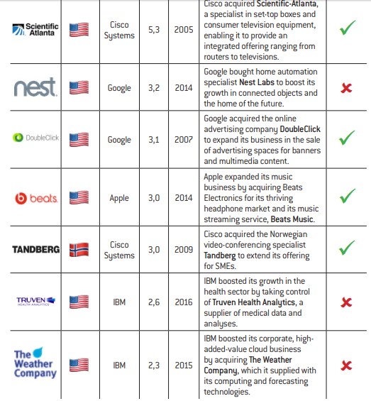 A selection of 20 major acquisitions of a value exceeding $2 billion performed by the big tech companies since 2000.