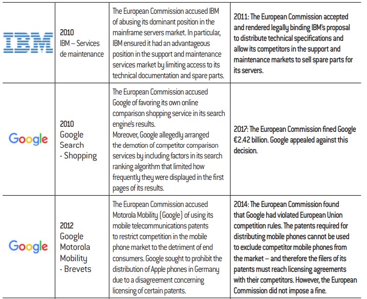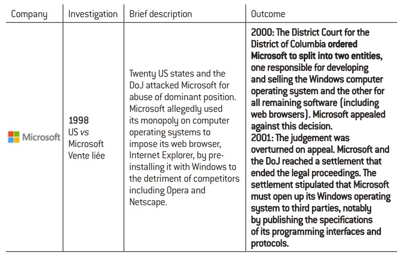Proven abuses of dominant position. Big tech companies have crossed swords with the European and US competition authorities more than once. Before examining these legal battles, we will take a moment to discuss the differences between European and US antitrust laws.
