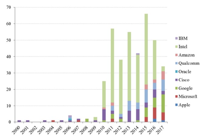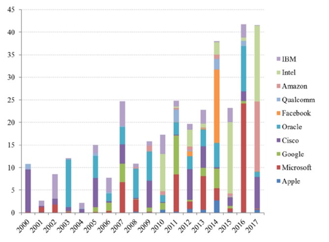 In addition to these takeovers, they also make minority investments mostly through their internal venture capital vehicles3. As the graph below shows, these are very frequent and their momentum increased considerably at the start of the last decade. We believe that this process is part of big tech companies’ efforts to monitor technological innovations. Anxious not to repeat their predecessors’ mistakes4, they secure special access to innovation through these investments. Consequently, they are able to closely monitor the emergence of any promising new technology from the earliest stages.