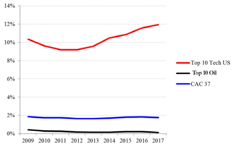 As we have seen in the first section of this paper, the American tech giants’ profits have been unparalleled over the past twenty years. Moreover, the big tech companies’ current valuations indicate that the markets are expecting these profits to be maintained or even increase in future years1.