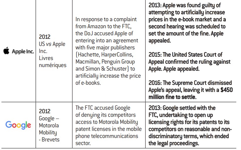 A curious fact can be noticed: in some cases, legal action has only been taken on one side of the Atlantic against anticompetitive practices that have had an impact on both sides. Consider the example of the e-book market. In response to a complaint filed by Amazon for anticompetitive practices, the FTC took Apple to court in 2012 accusing it of forming a cartel with five publishers. Following an initial ruling and four years of legal wrangling, the Supreme Court eventually dismissed Apple’s appeal in 2016 and the firm paid a fine of