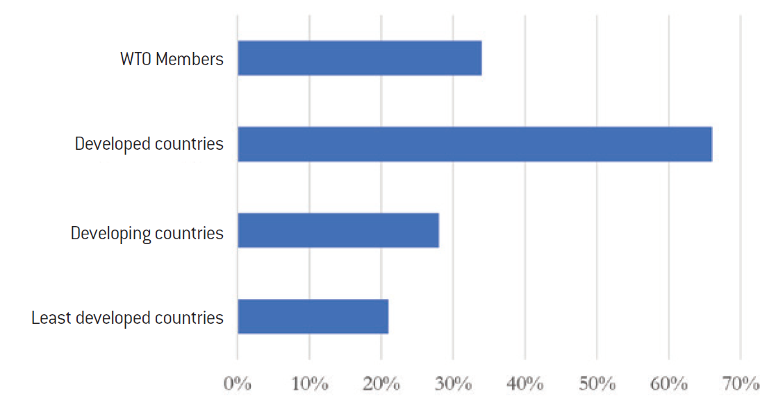 GATS commitments by group of WTO Member States, May 2019 (proportion of service sub- sectors with specific commitments from these groups of countries)