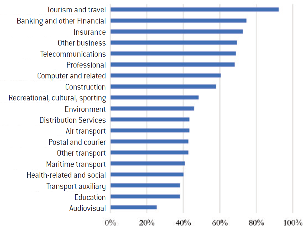 WTO Members’ GATS Commitments by Sector, May 2019 (% of Countries with Specific Commitments)