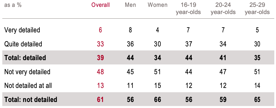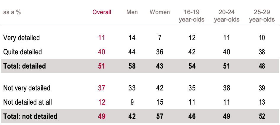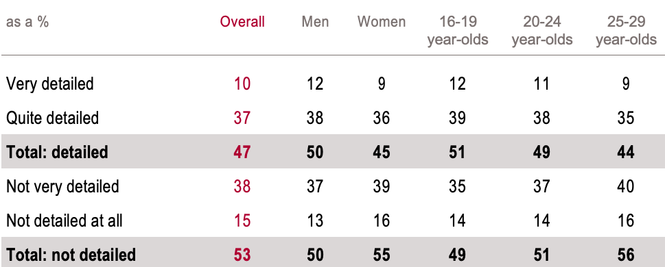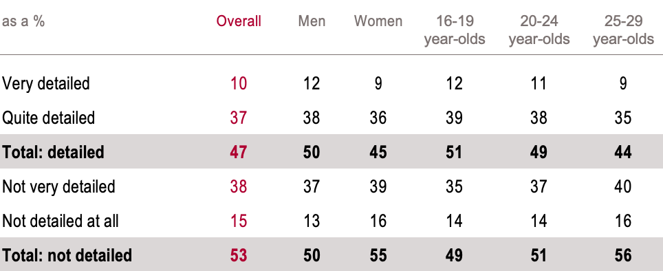 « Do you feel that your knowledge of the Second World War is very detailed, quite detailed, not very detailed or not detailed at all? »