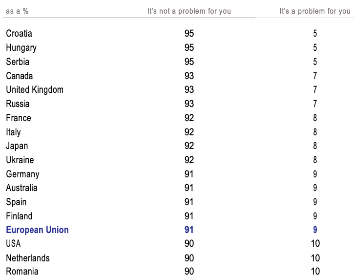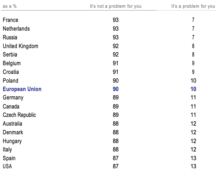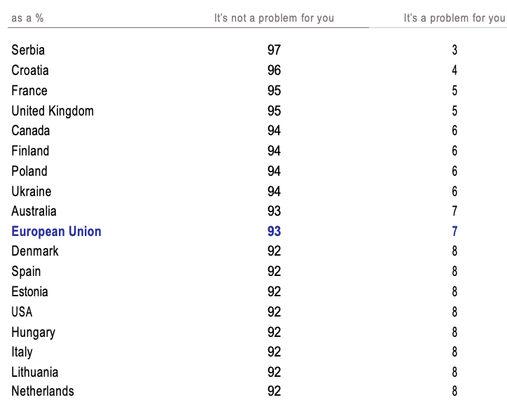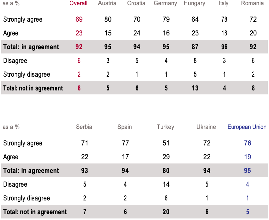 Australia (63%), the USA (62%), Canada (61%), Croatia and Serbia (59%), Belgium, France and Ukraine (58%), and Poland (57%).