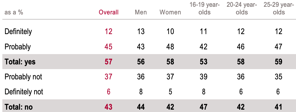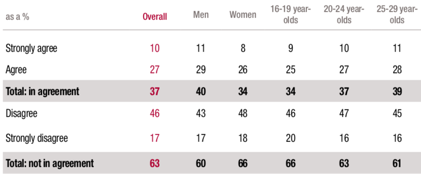Overall, and regardless of their sex or age, over eight young people in ten (85%) say that it is not a problem for them if a person does not share their political views.