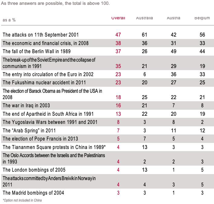 « Here is a series of events that have happened since 1989. Which are the three most important ones, in your opinion? »