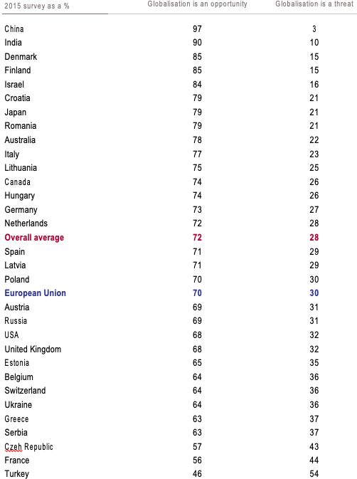 The overall results in Europe show that, in 2015, nearly three-quarters of young people (70%) have a positive perception of globalisation. With only a few exceptions, this sense of positivity is noticeably growing, impressively so in Greece, as it is in Hungary or Romania.