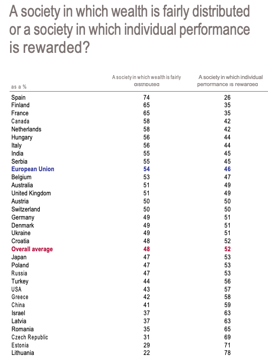 « What would characterise your ideal society? Please indicate your choice on the scale between the two opposites. »