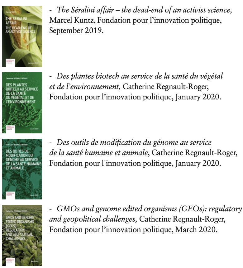 This study is the fifth in the Fondation pour l’innovation politique’s series on agritechnologies and biotechnologies, under the scientific direction of Ms. Catherine Regnault-Roger, professor emeritus at the University of Pau and the Pays de l’Adour, member of the French Academy of Agriculture and the National Academy of Pharmacy.