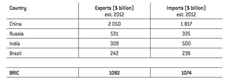In 2011 South Africa joined the group of BRIC, despite its modest population size (48 million people) compared with the Brazilian, Russian, Indian and Chinese giants. But thanks to the efforts of the South African business community which is very influential and integrated into the Anglosphere economy and to the Johannesburg Stock Exchange, it is a trade hub for raw materials12.