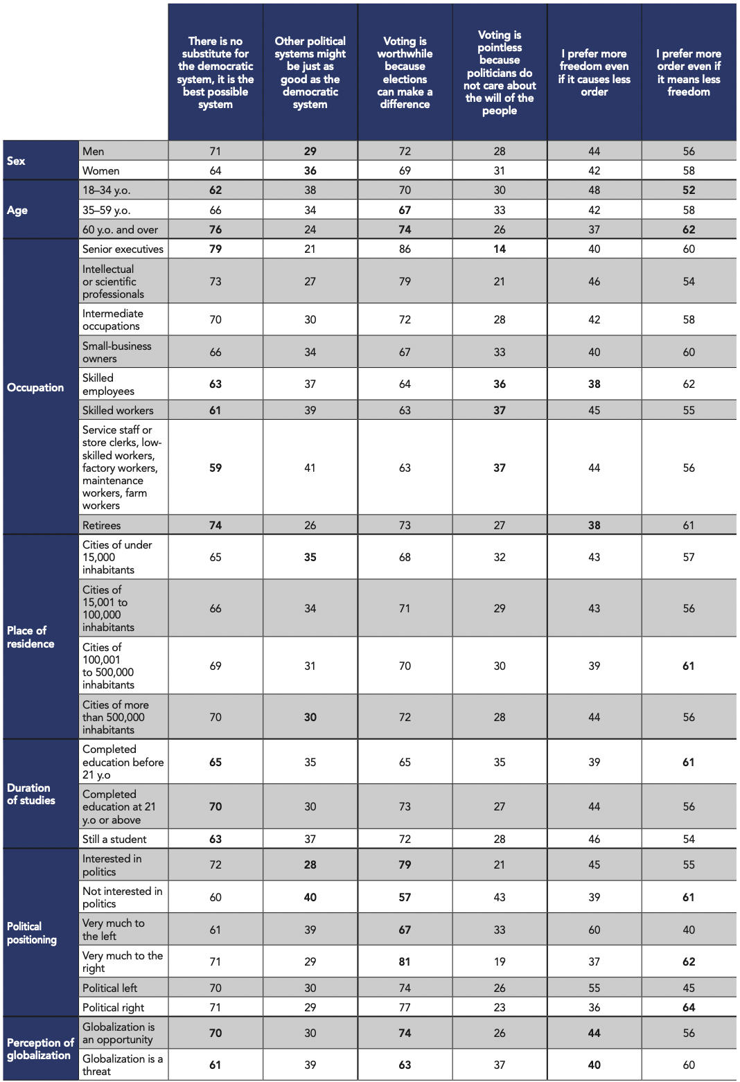 A global survey on the state of democracy by fondation pour l’innovation politique and the international republican institute