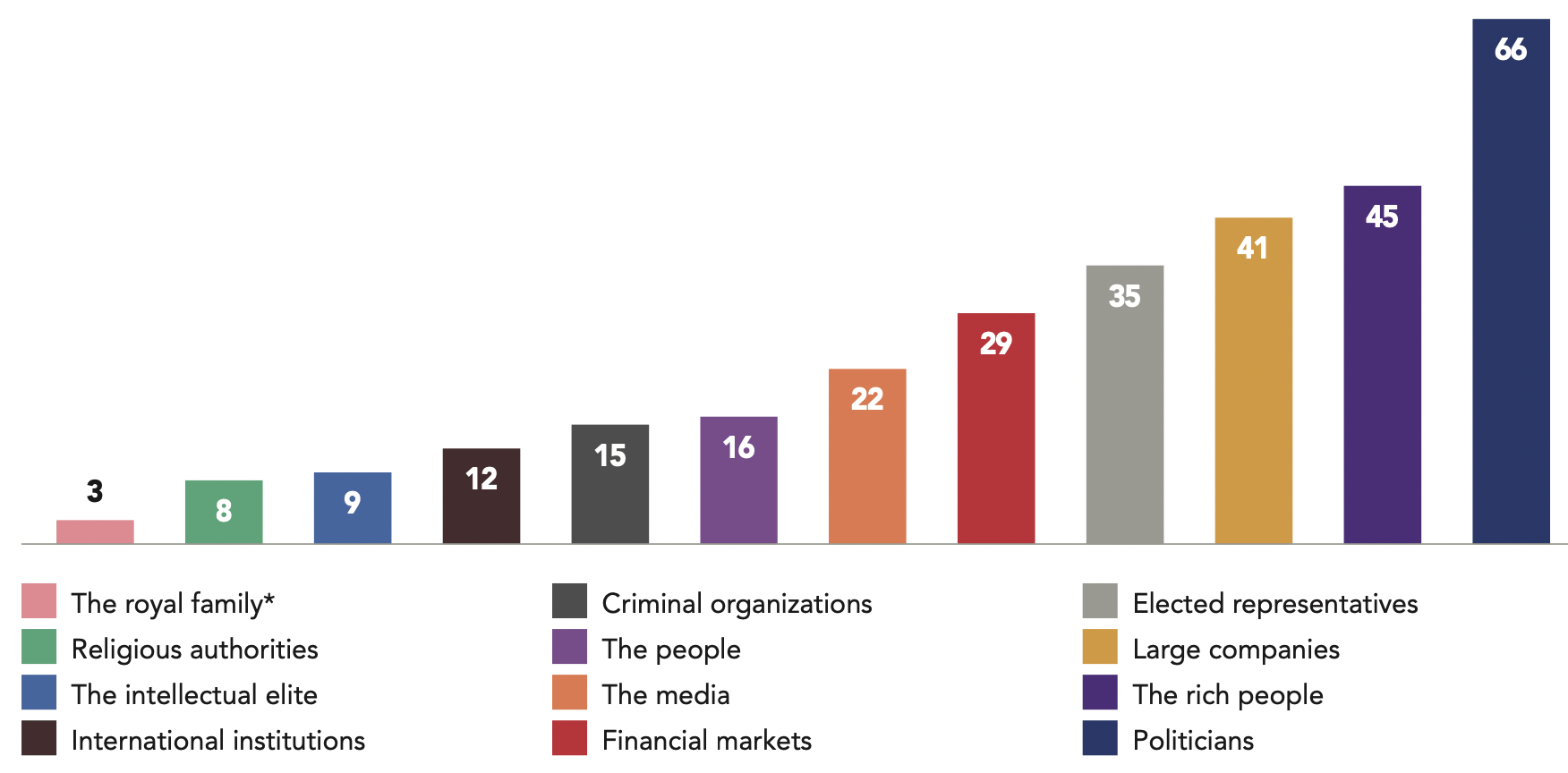 Lastly, the case of Brazil confirms the link between the rise of low-trust societies and the crisis of democracy. While the questionnaire for this survey was administered in September 2018, only a few weeks before the general elections of October 2018 that marked a turning point for the Brazilian political scene, the extremely low levels of trust Brazilians exhibit towards their political institutions is striking. Only 4% trust political parties, 10% trust Parliament, and less than half of the population trust the police (47% compared to 70% for the 42 democracies studied).