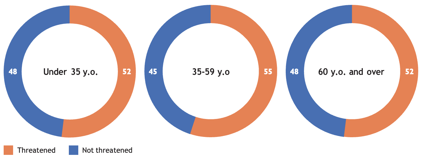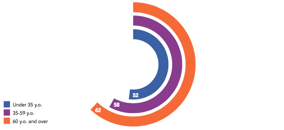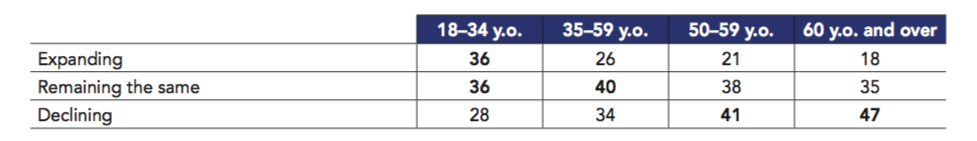 Paradoxically, it is evident that Russia is perceived as one of the least influential powers: only 6% of respondents cited it first, the same rate at which the European Union was chosen. Within democracies, however, Russia is considered the most worrying by two-thirds (65%) of respondents, compared to 56% for the United States and 49% for China. The trauma caused by Soviet imperialism in the aftermath of World War II and throughout the Cold War, and revived by belligerent contemporary politics, largely explains the sense of concern regarding Russia. The details of the data reveal traces of history: 72% of those aged 60 and over feel that Russia’s attitude is worrying, compared to 57% of those under 35.